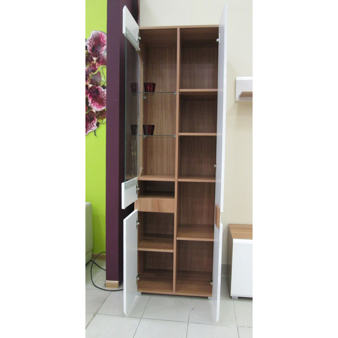 Двухстворчатый шкаф витрина для посуды в гостиную Леонардо МН-026-01 белый правый