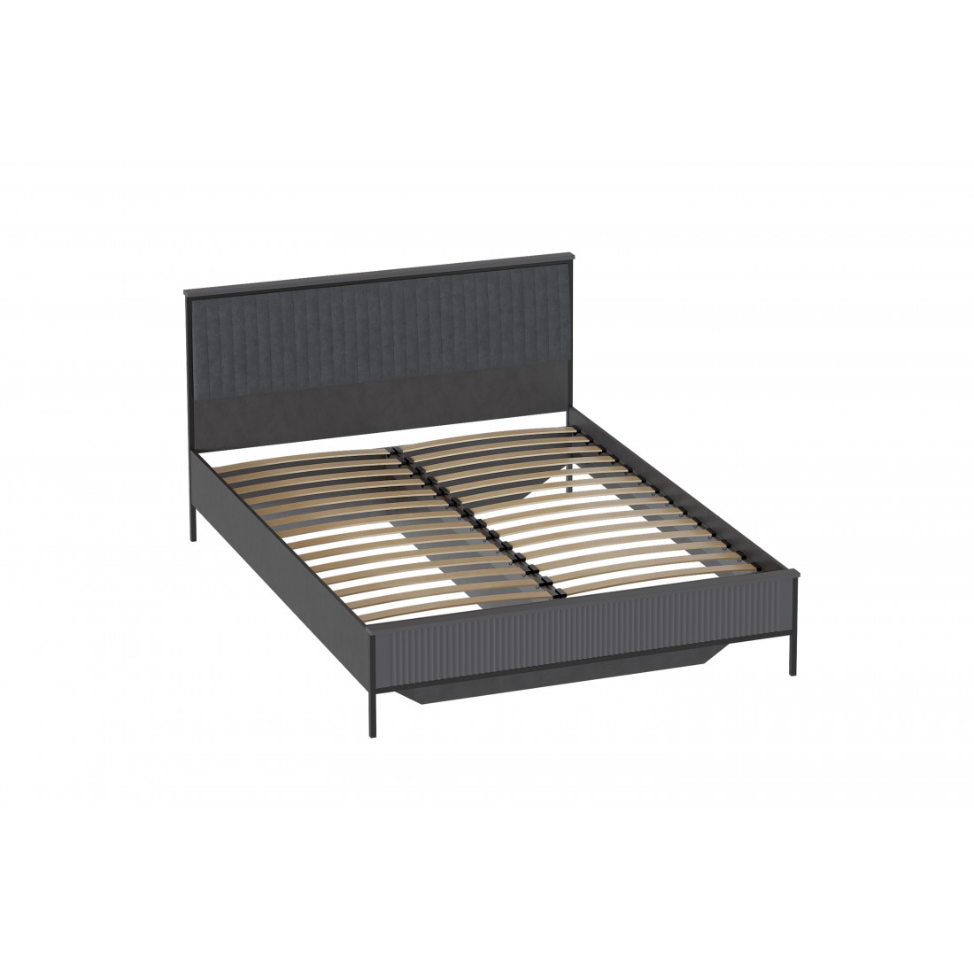 Дизайн коллекции гармонирует со стилем минимализм и лофт. Корпус изделий выполнен из качественного ЛДСП 16 мм цвета Металл Бруклин, фасады из МДФ 16 мм цвета Графит. Толщина металлических опор - 20 мм. Размеры спального места кровати: 160х200 см.