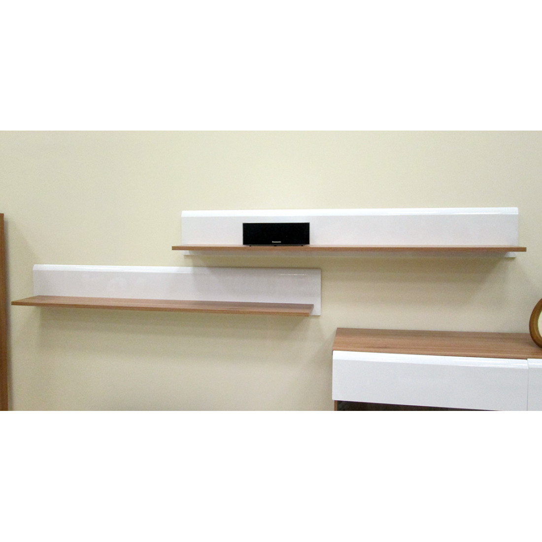 Цветовое исполнение полки дуб сонома и белое дерево.