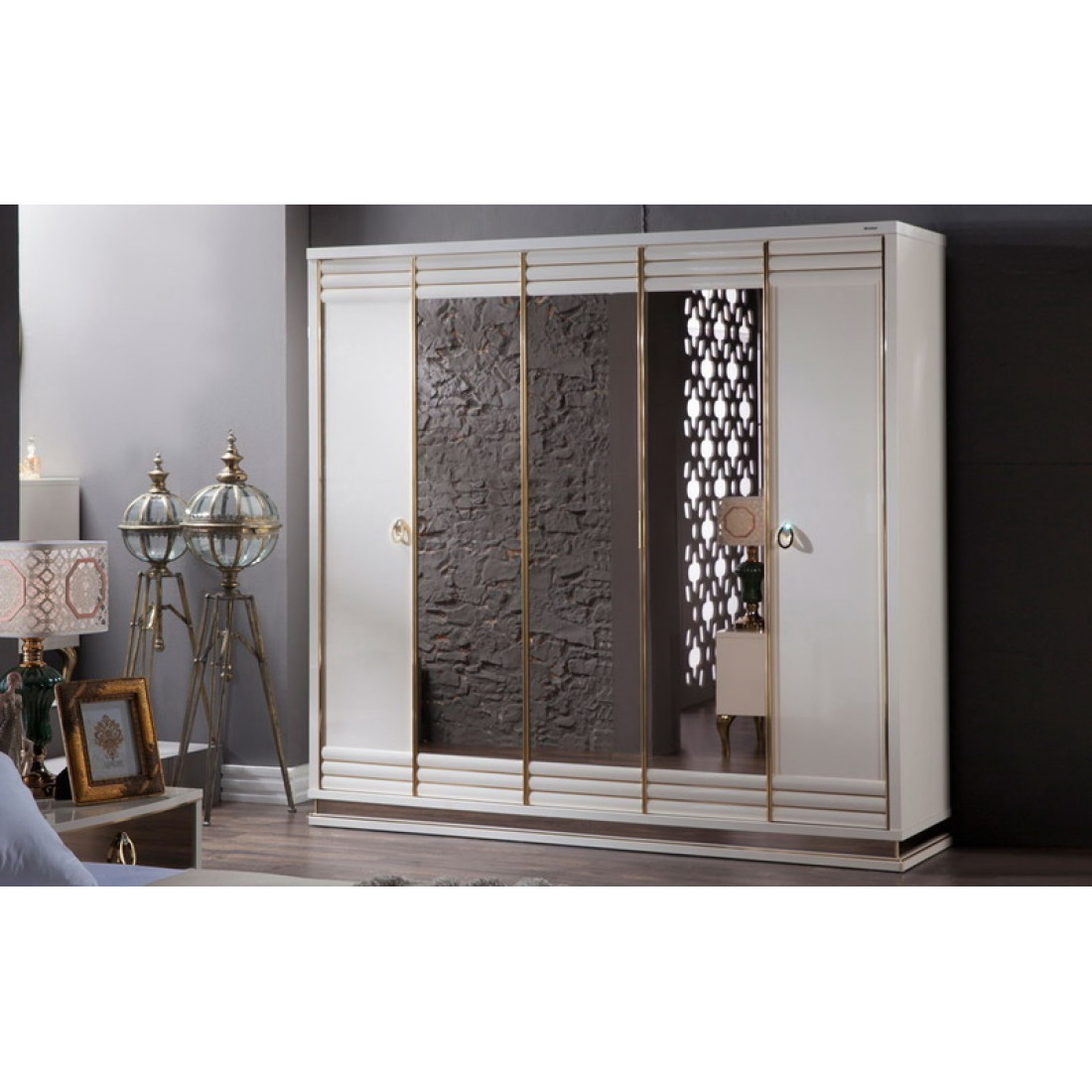 Четырехстворчатый шкаф для одежды с зеркалами и ящиками Богемия Вуд (Bogemia Wood) БМШ1/41 (Wo)