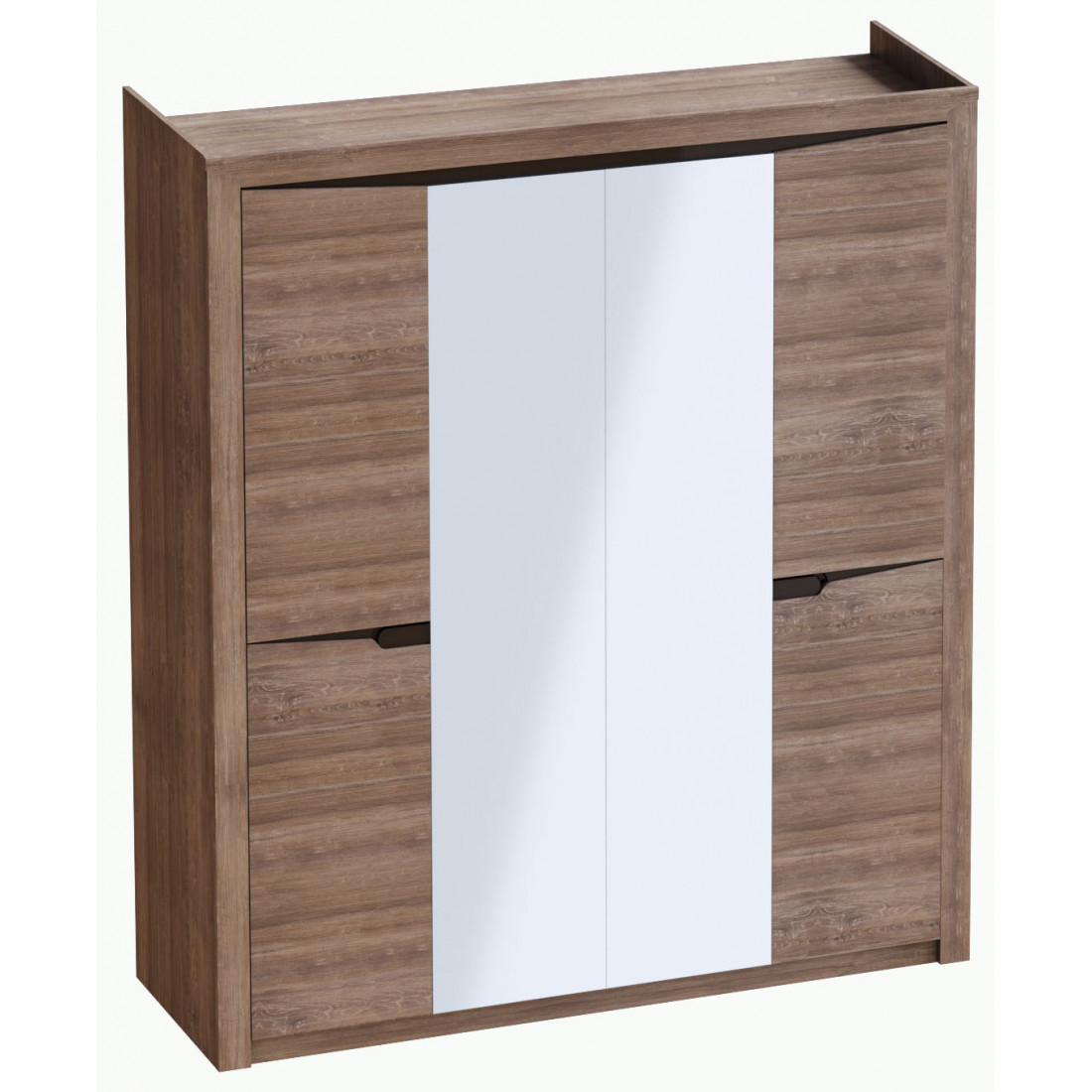 Четырехдверный шкаф для одежды из коллекции Соренто Дуб стирлинг порадует ценителей лаконичных форм своими простыми, современными линиями и приятной светлой деревянной текстурой, создающей чувство покоя и комфорта в вашем доме. Встроенное зеркало - утилитарное решение для удобного подбора гардероба, к тому же, оно визуально расширит пространство.