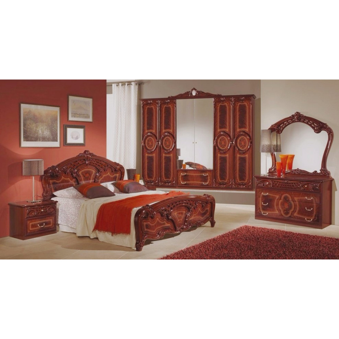 Спальня Роза (орех) композиция 2 от Российской фабрики "ДИА мебель". Выполнена в элегантном классическом стиле. Ореховый цвет в сочетании с глянцевым покрытием и орнаментом на фасадах, придает этой модели еще больше изысканности и подчеркивает прекрасное чувство стиля своего владельца.