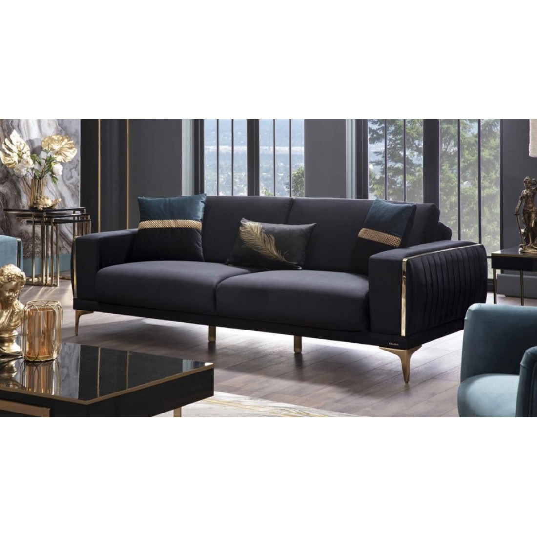 Сочетание синего, напоминающего цвет океана, и золота придётся по душе настоящим ценителям красоты и комфорта