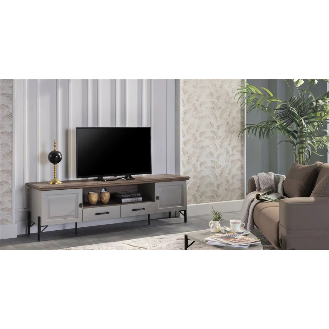Многофункциональная тумба под TV "Палвин". Шикарная стенка турецкого производства. На нее можно поставить телевизор размером в 55 дюймов. Есть место для DVD плеера и игровой приставки. Все вещи будут на своих местах, что не может не радовать.